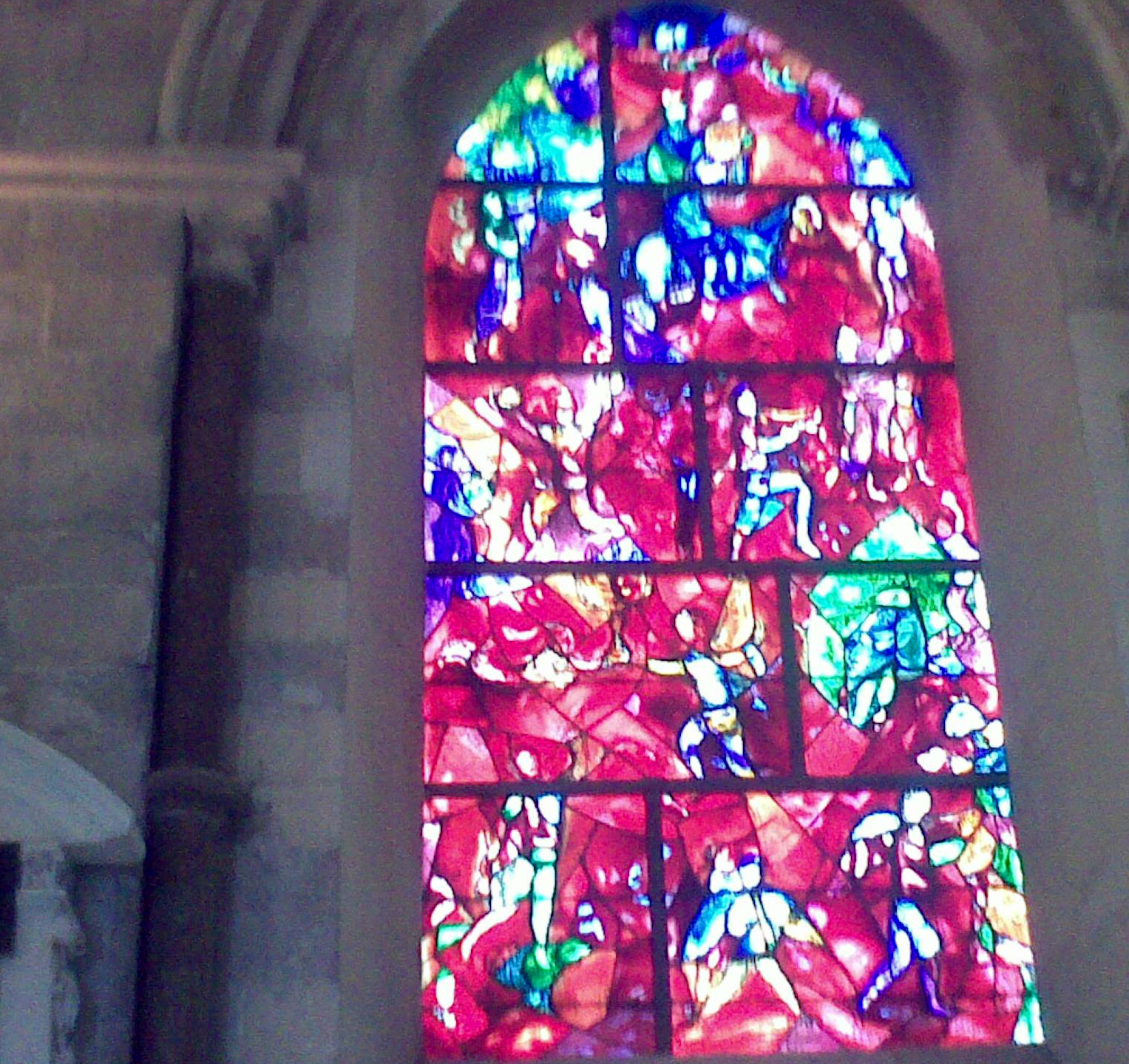 Note: The Chagall window [1978] – designed by Marc Chagall, dedicated to the bishop of Chichester Cathedral perfectly captures the theme of Psalm 150 inscribed on the plaque below: “O praise God in his holiness ~ Let everything that hath breath praise the Lord.”