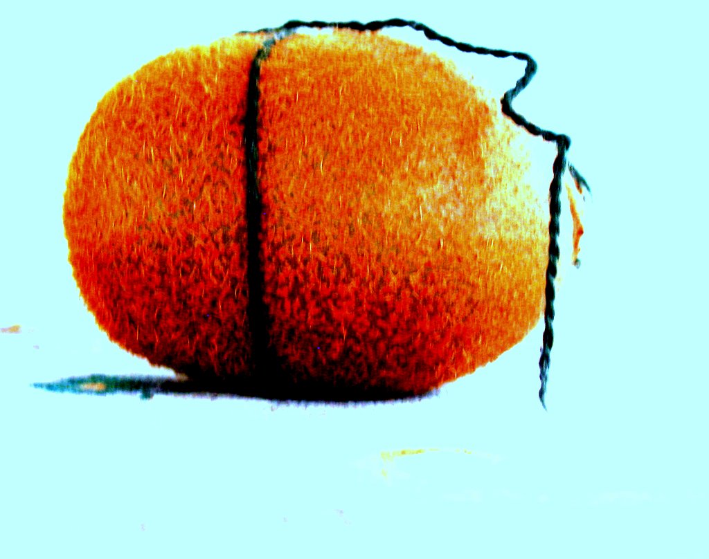 I had an idea about string theory.  With a kiwi fruit just sitting there on the table, it looked so … I don’t know passive – just sitting there, as though not to be loved, forced down by gravity on a table waiting for someone’s enjoyment or neglect.  Inside a whole universe of life, but outside, just an object of still life. Waiting for a painter or something.  As an Idea with no reason whatsoever, I felt the urge to tie a string to the kiwi fruit, as though it was a present perhaps, or like the world on a string perhaps.