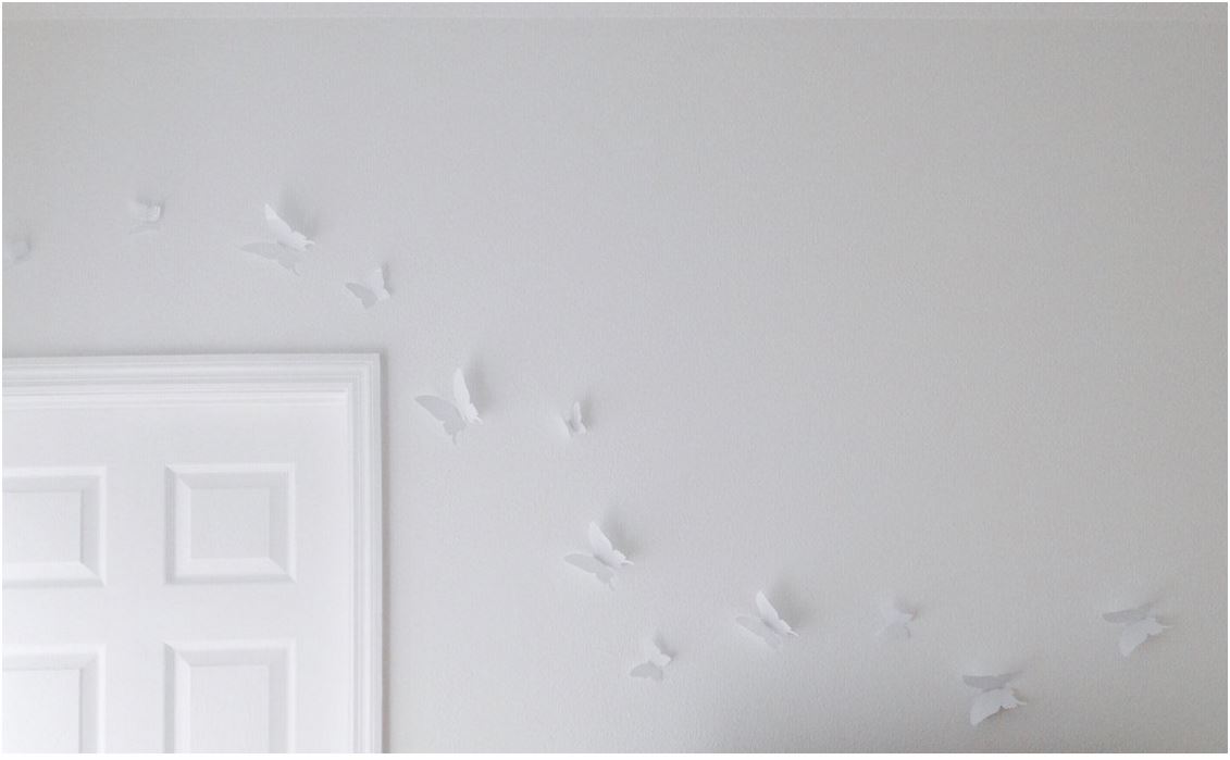 So with a little imagination I converted my wall to a canvas.  Not quite a Rothko.  Not anything like a Twombly.  Perhaps not even Picasso. It was easy really.  Just a can of thick ivory arctic white.  I started painting and having done the first coat it was just so great.  Shadows of chaos crept into my mind and introduced the concept of the art. Chaos and the butterfly fluttering through my imagination and Voila !! Frightening the imagination and trapping that fluttering pattern into the shadows of the wall. The canvas of shadows the butterfly behind the door.